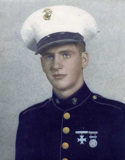 HEADQUARTERS AND SERVICE COMPANY, 3RD TANK BATTALION, 3RD MARINE DIVISION. BATTLES: GUAM AND IWO JIMA. AWARDS: AMERICAN AND PACIFIC THEATERS, 2 STARS, WWII VICTORY AND GOOD CONDUCT MEDAL.