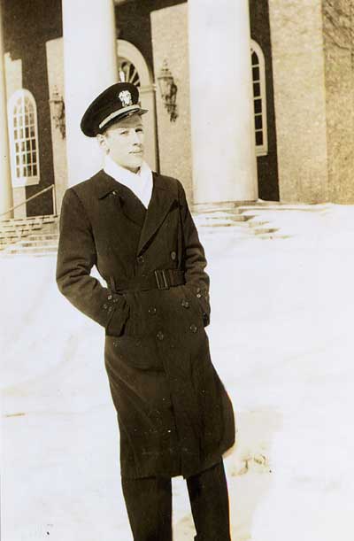 NAVAL TRAINING STATION (NTS) AT YALE; NAVAL SUPPLY CORPS SCHOOL IN BOSTON, MASSACHUSETTS. SERVED ABOARD THE USS COLUMBIA CL-56.