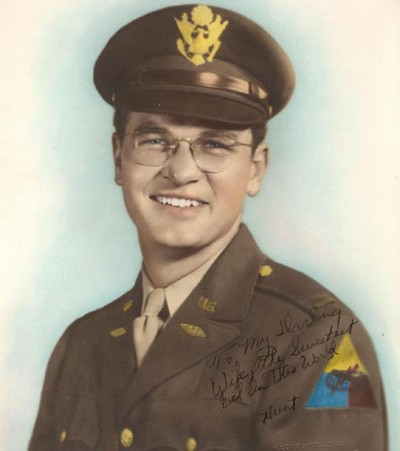 GRADUATED FROM CLEMSON COLLEGE IN JUNE 1943. A ROTC GRADUATE, HE WAS INDUCTED INTO THE ARMY AS A CORPORAL IN THE ARMORED INFANTRY AND APPOINTED TO (OCS) TRAINING AT FORT KNOX WHERE HE RECEIVED HIS COMMISSION AS A 2ND LIEUTENANT. RECEIVED ADVANCED TRAINING AT CAMP CHAFFEE WITH THE 16TH ARMORED INFANTRY DIVISION AND SHIPPED OVERSEAS WITH THE 16TH IN AUGUST 1944. HE FOUGHT WITH THE 16TH DIVISION, THIRD ARMY, THROUGH GERMANY AND INTO CZECHOSLOVAKIA UNTIL THE GERMANS SURRENDERED, AND THEY MET THE RUSSIANS ADVANCING FROM THE EAST. JOINED THE 1ST INFANTRY DIVISION AND WAS ASSIGNED DETACHED DUTY IN GERMANY TO ORGANIZE A TRANSPORTATION COMPANY TO TRANSPORT FOOD TO A DISPLACED PERSONS CAMP FOLLOWING THAT ASSIGNMENT HE WAS PROMOTED TO CAPTAIN AND ASSIGNED TO S-3, 1ST INFANTRY DIVISION WITH SPECIFIC DUTIES AS COMMANDER OF THE SS PRISONER OF WAR CAMP IN NUREMBERG DURING THE WAR CRIME TRIALS. HE RECEIVED A BATTLE STAR FOR THE EUROPEAN THEATRE AND WAS DISCHARGED IN JULY 1946.