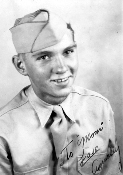 Drafted into the Army on February 1, 1943, at the age of 20. He attended basic training at Camp Swift, Texas and also went to Radio School while there. Was transferred to Camp Polk, Louisiana for advanced training. On January 23, 1944, he was assigned to Fort Leonard Wood, Missouri. He then went to Camp Callan in San Diego, California where he trained with the amphibious service and became part of the 322nd Combat Engineers. He later served as camp cook in San Luis Obispo, California, which is where he received orders to an East Coast embarkation port. On February 19, 1945, he left the United States, and arrived in Le Havre, France on March 3rd.