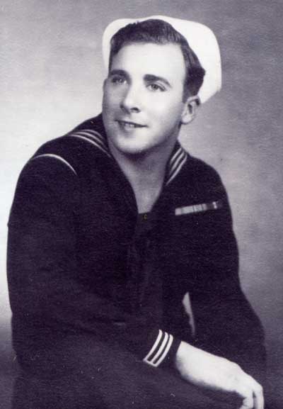 SERVED FROM APRIL 13, 1944 TO SEPTEMBER 4, 1945; WOUNDED IN ACTION. HONORABLE DISCHARGE FROM U.S. NAVAL HOSPITAL IN SAN DIEGO, CALIFORNIA.