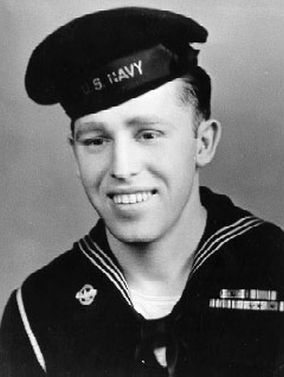 SERVED ON THE USS CALLAGHAN DD-792 IN SIX MAJOR BATTLES IN THE PACIFIC, INCLUDING THE BATTLE OF LEYTE GULF AND THE BATTLE OF OKINAWA. THE USS CALLAGHAN DD-792 WAS SUNK BY A KAMIKAZE IN THE BATTLE OF OKINAWA WHILE ON RADAR PICKET DUTY.