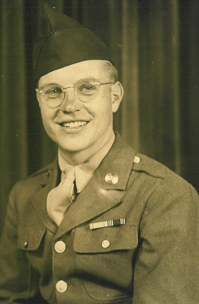 SERVED APRIL 7, 1941 TO OCTOBER 18, 1945. CANNONEER 864. FOUGHT IN GO 33 AND WD 45 IN NORMANDY, NORTHERN FRANCE, RHINELAND AND CENTRAL EUROPE. WOUNDED IN GERMANY ON MARCH 19, 1945. RECEIVED THE PURPLE HEART MEDAL, GOOD CONDUCT MEDAL, AMERICAN DEFENSE SERVICE MEDAL AND THE EUROPEAN-AFRICAN-MIDDLE EASTERN SERVICE MEDAL WITH 4 BRONZE STARS.