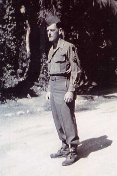 COMBAT IN ITALY WITH HEADQUARTERS COMPANY, 3RD BATTALION, 135TH INFANTRY REGIMENT, 34TH 'RED BULL' INFANTRY DIVISION; NOVEMBER 1943 TO DECEMBER 1945. RECEIVED THE PURPLE HEART WITH OAK LEAF CLUSTER, BRONZE STAR, CASSINO AND ANZIO INCLUDED. COMBAT INFANTRYMAN BADGE.