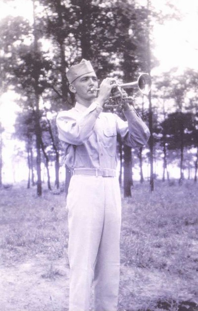 PARTICIPATED IN EUROPEAN CAMPAIGNS IN ARDENNES, RHINELAND AND CENTRAL EUROPE AS MEMBER OF THE 76TH INFANTRY DIVISION BAND.