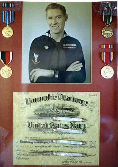 SERVED ABOARD THE USS CLEVELAND CL-55. WAS ONE OF THE FIRST TO LAND DURING THE NORMANDY INVASION. SERVED IN THE ATLANTIC AND PACIFIC THEATERS.