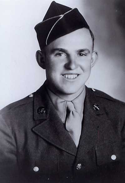 ENTERED SERVICE OCTOBER 1942. SERIOUSLY WOUNDED IN ACTION AT ST. LO, FRANCE IN 1944. AWARDED PURPLE HEART. HONORABLY DISCHARGED MARCH 1945.