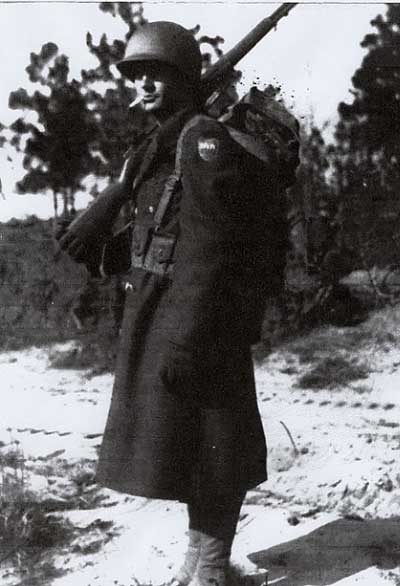 ENTERED ACTIVE SERVICE NOVEMBER 29, 1942 AT CAMP CROFT, SOUTH CAROLINA. RIFLEMAN 745 WITH COMPANY F, 143RD INFANTRY REGIMENT. BATTLES AND CAMPAIGNS: ROME-ARNO, SOUTHERN FRANCE, RHINELAND. AWARDED EUROPEAN-AFRICAN-MIDDLE EASTERN THEATER MEDAL, GOOD CONDUCT MEDAL. HONORABLY DISCHARGED OCTOBER 23, 1945.