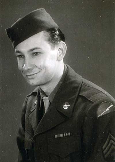 SERVED IN HEADQUARTERS BATTERY, 881ST FIELD ARTILLERY BATTALION, FIGHTING 69TH INFANTRY DIVISION IN ENGLAND, FRANCE, BELGIUM AND GERMANY. HE WAS A SERGEANT IN ARTILLERY.