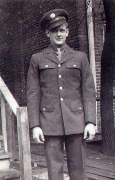 COMPLETED A TOUR OF DUTY IN DUTCH HARBOR WITH THE ANTI-AIRCRAFT DIVISION. WENT TO 87TH INFANTRY, COMPANY L, 347TH INFANTRY REGIMENT AS A .30 CALIBER MACHINE GUNNER TO THE EUROPEAN THEATER. RECEIVED COMBAT INFANTRYMAN BADGE. SERIOUSLY WOUNDED AND RECEIVED THE PURPLE HEART.