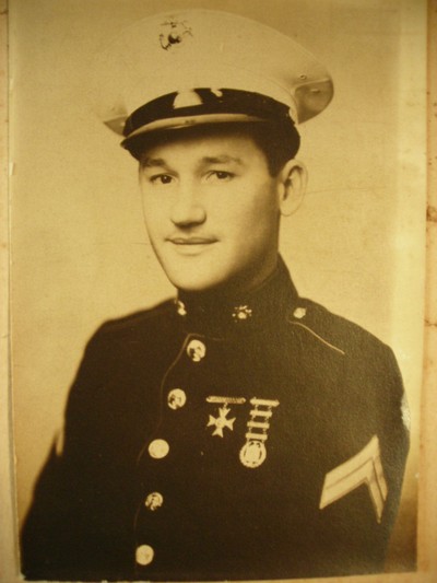 U.S. MARINE CORPS. 4 YEARS, SERGEANT, RANGEFINDER OPERATOR, SERVED ON USS ENTERPRISE, HONORABLE DISCHARGE 9/9/41. U.S. ARMY 2 YEARS, Private First Class, SQUADRON 216TH ARMY AIR FORCE, ELLENBURG, WASHINGTON, RECEIVED 7 WEEKS INITIAL INSTRUCTION IN AIR CADET TRAINING, HQ WRIGHT FIELD, MILITARY POLICE, ASSISTED IN ENFORCEMENT OF LAW AND ORDER ON MILITARY RESERVATION. AMERICAN THEATER RIBBON, AMERICAN DEFENSE RIBBON WITH ONE BRONZE STAR, WWII VICTORY MEDAL, HONORABLE DISCHARGE 11/21/45.