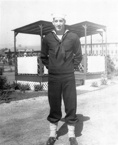 APPRENTICE SEAMAN. ACTIVE DUTY JUNE 16, 1945. ASSIGNED TO LST 1048. HAULED TROOPS AND EQUIPMENT THROUGH THE PHILIPPINE ISLANDS, CHINA, JAPAN AND BORNEO. AFTER THE WAR ENDED, HE WAS ASSIGNED TO USS RAWLINS. SAILED THROUGH THE PACIFIC, PANAMA CANAL TO NORFOLK, VIRGINIA. DISCHARGED AT GREAT LAKES, ILLINOIS; AUGUST 9, 1946. AWARDS: AMERICAN AREA RIBBON, WWII VICTORY RIBBON, AND ASIATIC-PACIFIC THEATER RIBBON.