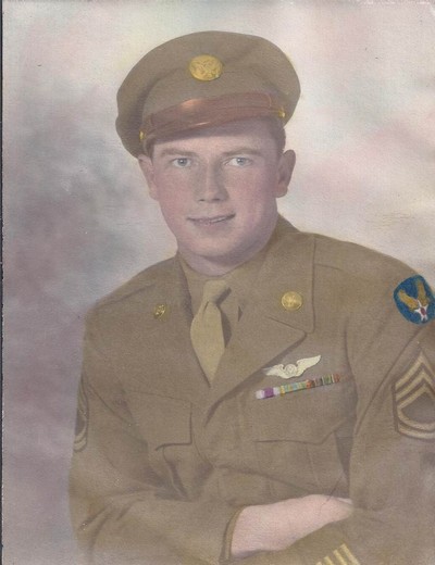FLEW ON MISSION #20-06, MARCH 1943, #42-5261 (NO NAME) 360BS. HIS B-17 AIRCRAFT WAS FLYING IN THE NUMBER 3 POSITION IN THE LEAD ELEMENT AND WAS HIT BY AN FW-190 COMING IN OUT OF THE SUN. THE NUMBER 1 AND 2 ENGINE WAS KNOCKED OUT. IT WAS LAST SEEN HEADING TOWARD THE FRENCH COAST AND WAS IN CONTROL AT THE TIME. FORTY MINUTES LATER THE B-17 WAS DITCHED IN BAY OF BISCAY, 40 MILES OFF LORIENT. TWELVE HOURS LATER, HE AND 7 OTHER CREW MEMBERS WERE PICKED UP BY A GERMAN BOAT AND BROUGHT BACK TO GERMANY. HE SERVED THE REST OF THE TIME AS A PRISONER OF WAR IN STALAG VII-A UNTIL HE WAS LIBERATED ON APRIL 30, 1945.
