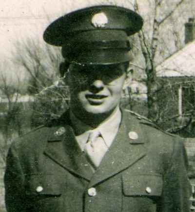 RANK AND SERVICE: INDUCTED INTO SERVICE FROM JEFFERSON BARRACKS, MISSOURI AS A CARPENTER GENERAL (TECHNICIAN 5TH GRADE) IN THE 135TH ENGINEERS COMBAT BATTALION SERVING FROM NOVEMBER 1942 UNTIL OCTOBER 1945. BATTLES AND CAMPAIGNS: NORTHERN FRANCE, RHINELAND, ARDENNES, AND CENTRAL EUROPE. DECORATIONS AND CITATIONS: EUROPEAN-AFRICAN-MIDDLE EASTERN THEATER RIBBON WITH 4 BRONZE BATTLE STARS, GOOD CONDUCT RIBBON, PURPLE HEART GO 131 HEADQUARTERS 80TH DIVISION 45, 2 OVERSEAS SERVICE BARS, AMERICAN THEATER RIBBON, AND WWII VICTORY RIBBON.