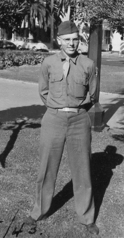 SERVED WWII IN GERMANY; FEBRUARY 23, 1943 TO DECEMBER 16, 1945 AS A CANNONEER FIRING THE 105MM HOWITZER. ALSO STRUNG TELEPHONE WIRES ON THE FRONT LINE.