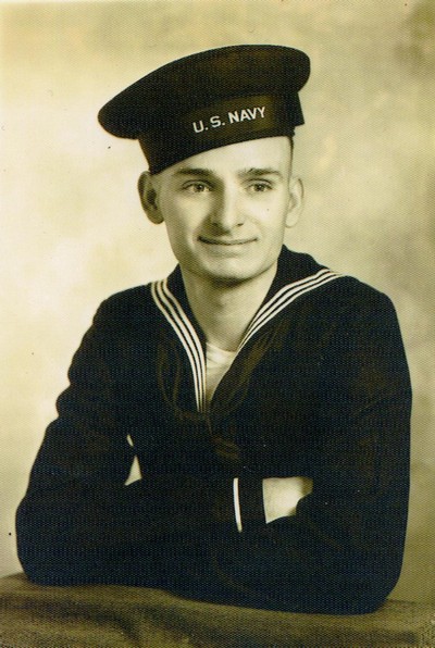 INDUCTED INTO SERVICE DECEMBER 1943 FROM GREAT LAKES, ILLINOIS; STATIONED AT NAVAL TRAINING STATION IN FARRAGUT, IDAHO; NAVY TECHNICAL TRAINING CENTER IN MEMPHIS, TENNESSEE; VTB-2 OPERATIONAL TRAINING UNIT, U.S. NAVAL AIR STATION IN MIAMI, FLORIDA; TORPEDO SQUADRON NINETY SEVEN COMBAT AIRCRAFT SERVICE UNIT-21 IN NAGS PURCELL, OKLAHOMA; CITATIONS: AMERICAN AREA MEDAL AND WWII VICTORY MEDAL; SEPARATED FROM SERVICE IN JANUARY 1946.