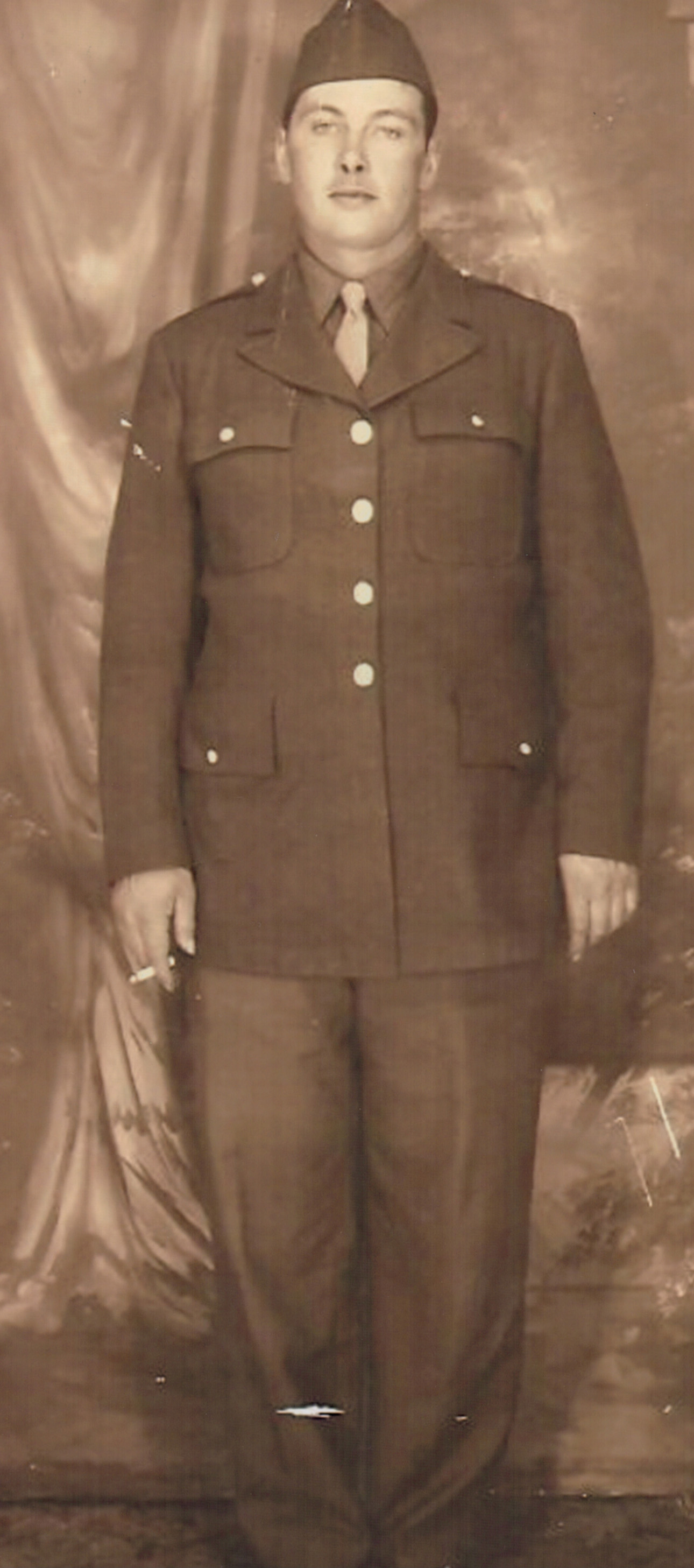 ENTERED ACTIVE SERVICE; NOVEMBER 13, 1942. SERVED UNDER GENERAL GEORGE PATTON, 3RD ARMY IN RHINELAND, ARDENNES, AND CENTRAL EUROPE. RECEIVED THE GOOD CONDUCT MEDAL, AMERICAN CAMPAIGN MEDAL, EUROPEAN-AFRICAN-MIDDLE EASTERN CAMPAIGN MEDAL WITH 3 BRONZE STARS AND WWII VICTORY MEDAL. HONORABLE DISCHARGE; JANUARY 6, 1946.