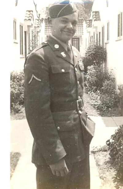 STAFF SERGEANT, 2ND BATTALION, 382ND REGIMENT, 96TH DIVISION 'DEADEYES'. BATTLES OF LEYTE, SAMAR, MINDORO AND OKINAWA. AWARDED BRONZE STAR WITH OAK LEAF CLUSTER, PURPLE HEART WITH OAK LEAF CLUSTER, COMBAT INFANTRYMAN BADGE, PRESIDENTIAL UNIT CITATION, ASIATIC-PACIFIC CAMPAIGN MEDAL WITH BRONZE ARROWHEAD AND 2 BATTLE STARS, PHILIPPINE PRESIDENTIAL UNIT CITATION AND LIBERATION RIBBON, AND EXPERT RIFLEMAN BADGE.