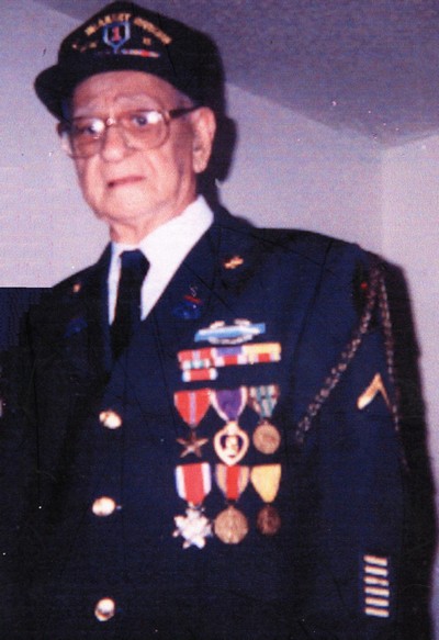 Served in Company M, 18th Infantry, 1st Division. Invaded North Africa, Battle of Oran November 8 - 10, 1942. Tunisia December 1942 to May 9, 1943. Invaded Sicily, Campaign July 11, 1942 to July 6, 1943. Contracted Malaria and nervous condition. Sent to France, in the Military Police. In charge of freight trains all over Europe. Military Service October 9, 1940 to July 1, 1945.