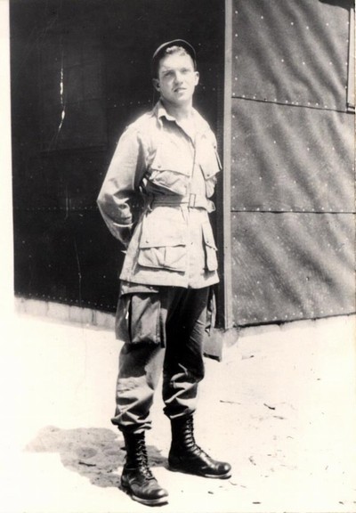 Enlisted August 1942 at Fort McPherson in Atlanta, Georgia. Assigned to Headquarters Company, 2nd Battalion, 506th Parachute Infantry Regiment at Camp Toccoa, Georgia. Received basic parachute and infantry training at Camp Toccoa and Fort Benning, Georgia. On fifth jump lost three fingers of left hand. Continued parachute infantry training at Camp Mackall, North Carolina. Further training with 101st Airborne Division in England prior to Combat Jump in Normandy on D-Day with the machine gun platoon of Headquarters Company, 2nd Battalion, 506th Parachute Infantry Regiment. Wounded and evacuated June 7, 1942. In September 1944, made Combat Jump with the S-2 section, Headquarters Company, 2nd Battalion, 506th Parachute Infantry Regiment in Holland. In November 1944, was transferred to U.S. by medics. Finished military duty as Jump Master in the parachute school at Fort Benning Georgia. Discharged in November 1945 with rank of Private First Class. Received Purple Heart, Bronze Star, Combat Infantryman Badge, Parachute Wings, European Theater of Operations and Good Conduct Medal.