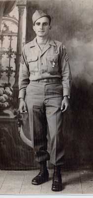 SERVED THREE YEARS IN THE EUROPEAN THEATER OF OPERATIONS AS A MILITARY POLICE SERGEANT ATTACHED TO THE 1ST INFANTRY. PARTICIPATED IN THE INVASION OF KASSERINE PASS, NORTH AFRICA AND THE INVASION OF SICILY.