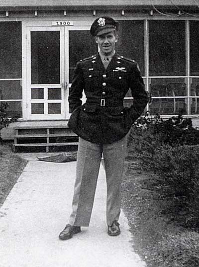 ENTERED SERVICE ON FEBRUARY 26, 1942 AND WAS INITIALLY ASSIGNED TO FORT BRAGG, NORTH CAROLINA ON OCTOBER 15, 1942. LATER HE WAS TRANSFERRED TO THE ARMY AIR CORPS AS AN AVIATION CADET AND WAS COMMISSIONED A 2ND LIEUTENANT AT TURNER FIELD, ALBANY, GEORGIA ON AUGUST 30, 1943. IN APRIL 1944, WAS ASSIGNED TO NUTHAMPSTEAD, ENGLAND AS B-17 PILOT. HE FLEW 33 MISSIONS OVER EUROPE AND WAS PROMOTED TO 1ST LIEUTENANT IN APRIL 1944. WHEN HE RETURNED TO THE U.S. IN NOVEMBER 1944, HE WAS ASSIGNED AS AN AIRCRAFT MAINTENANCE OFFICER AT WILLIAMS AIR FORCE BASE IN CHANDLER, ARIZONA. WAS DISCHARGED ON SEPTEMBER 4, 1945. HE RECEIVED THE DISTINGUISHED FLYING CROSS, AIR MEDAL WITH 3 OAK LEAF CLUSTERS AND THE EUROPEAN-AFRICAN-MIDDLE EASTERN THEATER RIBBON.