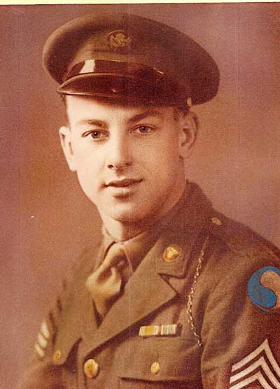 AT AGE 22, ENLISTED 27 FEBRUARY 1940 AT TOWSON MARYLAND. COMPANY B, 104TH MEDICAL BATTALION, THE 29TH INFANTRY DIVISION. SERVED UNTIL HONORABLY DISCHARGED ON 28 JULY 1945. HE LANDED ON OMAHA BEACH ON D-DAY IN THE SECOND WAVE. RECEIVED CERTIFICATE OF MERIT FOR HIS ACTIONS EVACUATING THE WOUNDED UNDER HEAVY SMALL ARMS FIRE AND ARTILLERY FIRE. WHILE SERVING IN THE NATIONAL GUARD AFTER THE WAR, WAS PROMOTED TO 2ND LIEUTENANT.