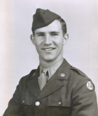 IN A COMPANY, 11TH INFANTRY REGIMENT, 5TH DIVISION, 3RD ARMY. SERVED FROM MAY 1943 TO NOVEMBER 1945. RECEIVED THE BRONZE STAR, COMBAT INFANTRYMAN BADGE, PURPLE HEART; WOUNDED IN LUXEMBOURG IN JANUARY OF 1945. EUROPEAN THEATER RIBBON WITH 4 BATTLE STARS, AMERICAN THEATRE RIBBON AND VICTORY MEDAL.