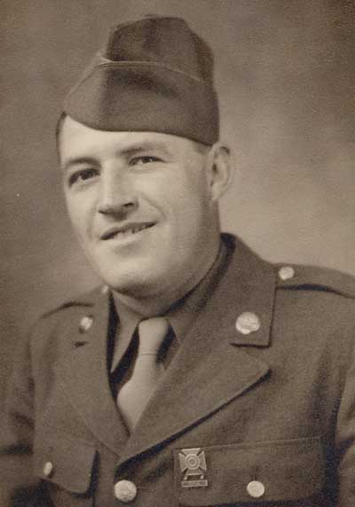Enlisted May 20, 1943 and received training with the 16th armored Division. Left for Naples, Italy on the aircraft carrier USS WASP. Served in the Tank Corps in the European Theater of Operations. After fifteen months overseas, was honorably discharged on December 16, 1945 at Fort Knox, Kentucky.