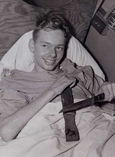 SERVED IN NORMANDY AND FRANCE. RECEIVED PURPLE HEART. WOUNDED IN ST. LO. SERVED WITH 9TH INFANTRY DIVISION. ALSO RECEIVED COMBAT INFANTRYMAN BADGE AND BRONZE STAR.