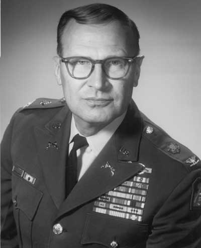 Entered in 1940. Spearheaded General Patton's 3rd Army across Europe with the XII Corps. Decorated with a silver star with oak leaf cluster for gallantry, bronze star with oak leaf cluster for valor, 15 battle stars, Legion of Merit with 2 oak leaf clusters, and Combat Infantryman Badge and others.