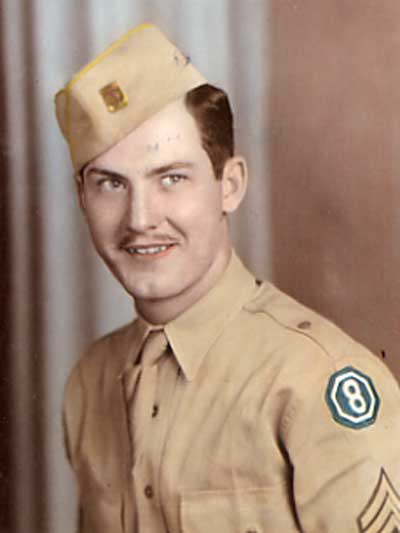 SERVED WITH THE 113TH CAVALRY BAND THE 'RED HORSES'. PLAYED THE FRENCH HORN. WHEN THE BAND LEFT FOR OVERSEAS IT WAS RENAMED AND TRANSFERRED INTO THE 66TH ARMED GROUND FORCES. ON THE FRONT LINE MUCH OF THE TIME. SERVED AS STRETCHER BEARERS WHEN NOT PERFORMING. MET MANY STARS WHO WERE THERE TO CHEER THE SOLDIERS ON; SUCH AS FRED ASTAIRE, WHO TRAVELED WITH THE BAND FOR SEVERAL DAYS.