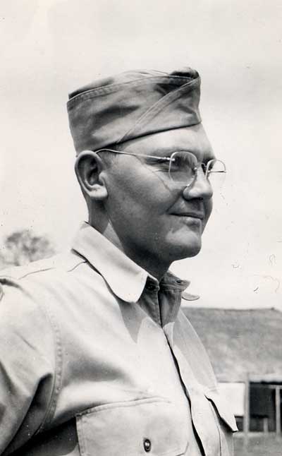 ENTERED JULY 1941, DISCHARGED DECEMBER 1946. SERVED ONE YEAR IN THE CHINA-BURMA-INDIA THEATER. PLANNED TO BECOME A PILOT BUT BECAME ENGINEER DUE TO COLOR BLINDNESS.